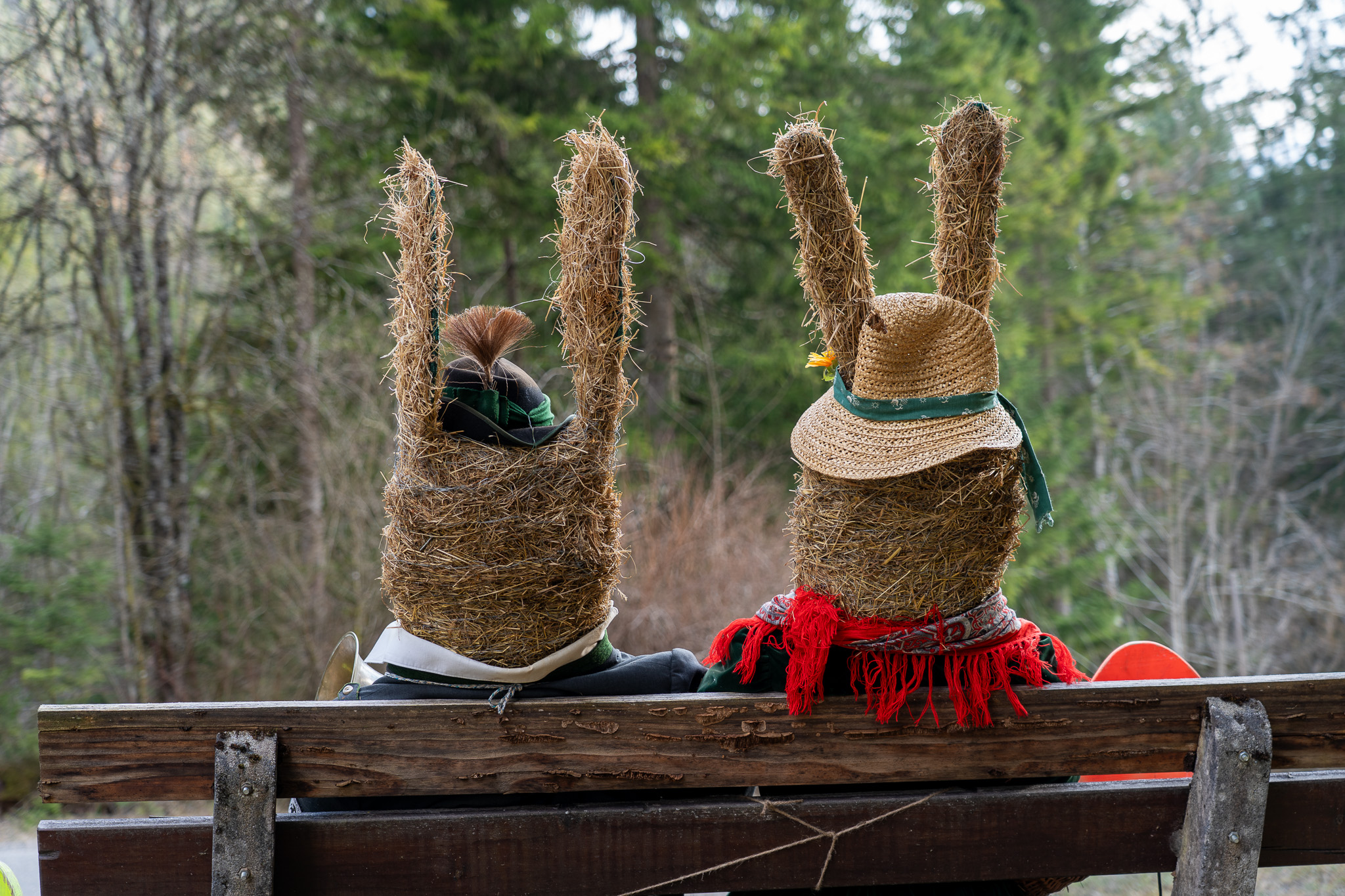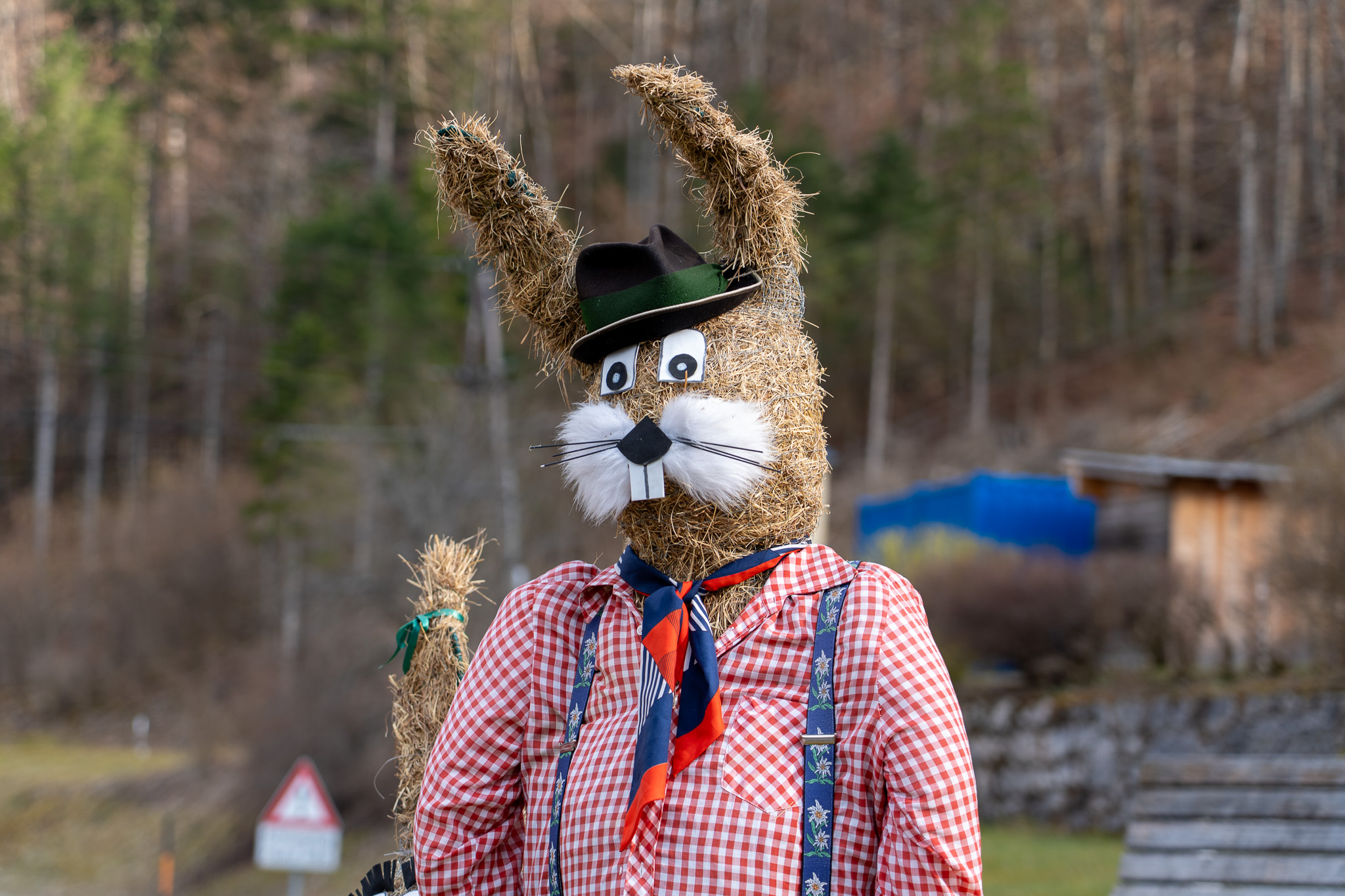 Mit viel Liebe zum Detail und in sorgfältiger Handarbeit gefertigt, zieren die "Haserl" aus Heu ausgewählte Plätze
